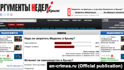 Кримське видання «Аргументы недели – Крым» опублікувало інтернет-опитування читачів, яких попросили відповісти на запитання, чи підтримують вони заборону Меджлісу кримськотатарського народу в Криму.