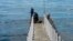 Дорослі і юні алуштинці рибалять з однієї буни біля центральної міської набережної